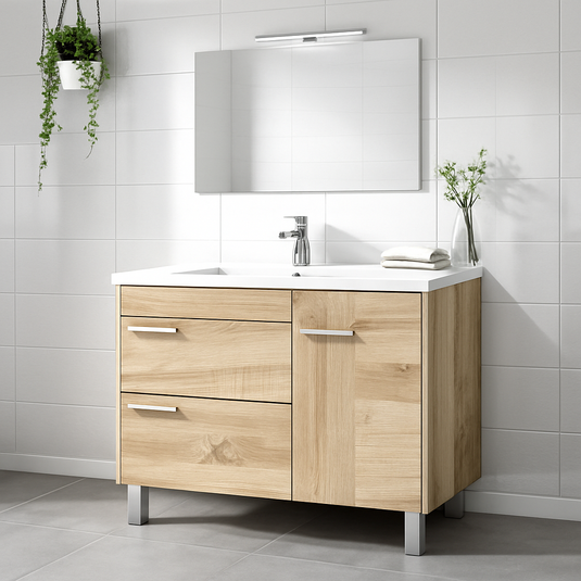 Bekijk onze Badkamerkaptafels – Eikenkleurig. Deze warme eikenlook past perfect in moderne,...