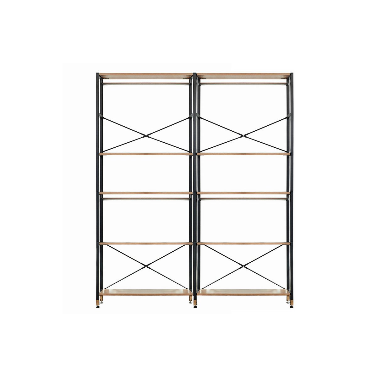 Het Vorstelijk met erweiterungselement is praktisch en doelgericht: het lost ruimteproblemen op en biedt zowel opbergruimte als een ophangoptie. De combinatie van een metalen frame en meerdere legplanken maakt het geschikt voor allerlei spullen, van boeken en dozen tot decoratieve items en kleding aan de stang.