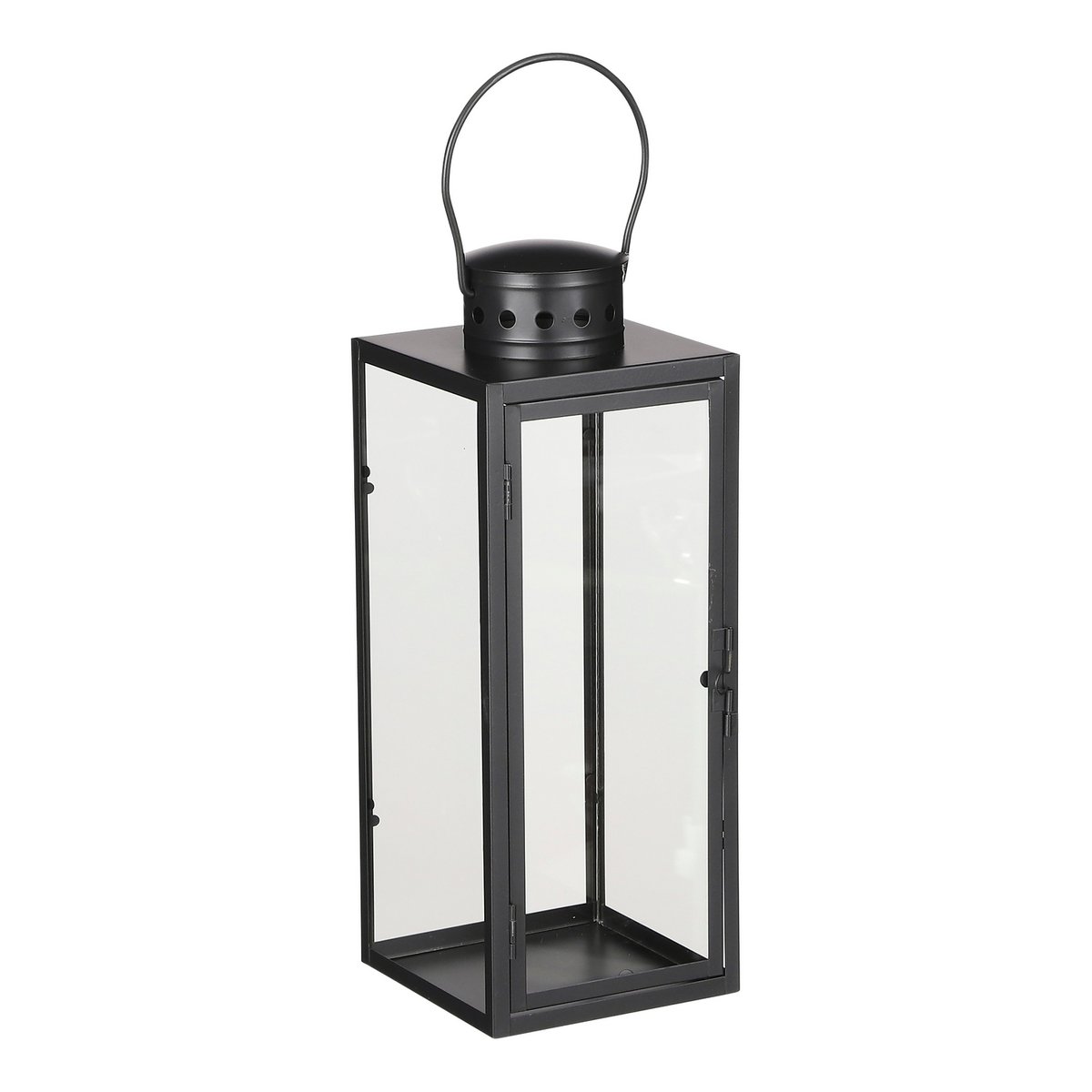 De Arzilla lantaarn van Mica Decorations is een strak, modern windlicht in zwart metaal waarmee je direct sfeer toevoegt aan je woonkamer, terras of hal. Dankzij de grote glazen zijkanten geniet je optimaal van het kaarslicht, terwijl het stevige ijzeren frame bescherming biedt en het klassieke lantaarn‑silhouet behoudt. Je zet eenvoudig een stompkaars of LED‑kaars in de lantaarn en het licht verspreidt zich mooi door het glas.
