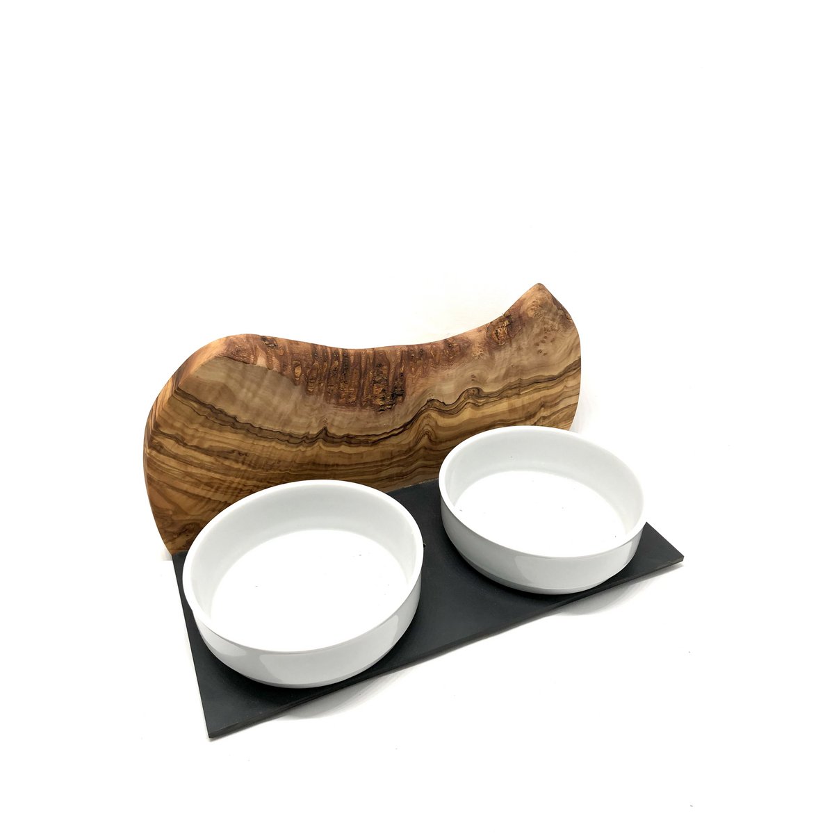 Voerstation MOUNTAIN 2x 0,9 liter porseleinen kom olijfhout