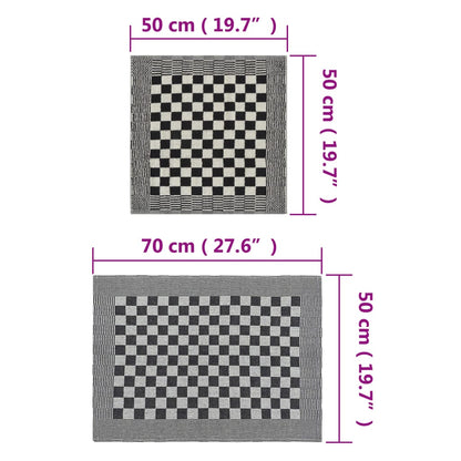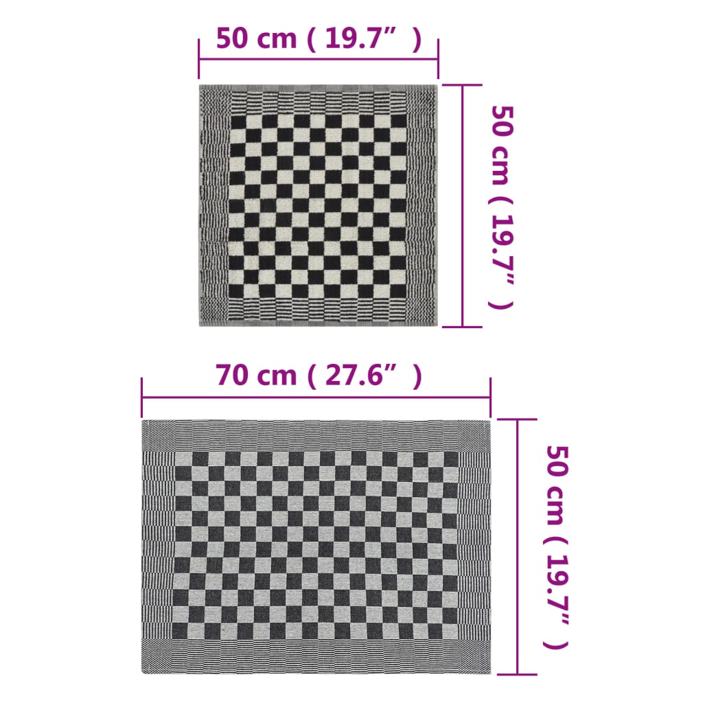 Met de afmetingen van 50 x 70 cm voor de theedoeken en 50 x 50 cm voor de handdoeken, passen deze doeken gemakkelijk in elke keuken. De klassieke kleuren zwart en wit zorgen ervoor dat ze in elk interieur passen, of je nu een moderne, landelijke of industriële stijl hebt.