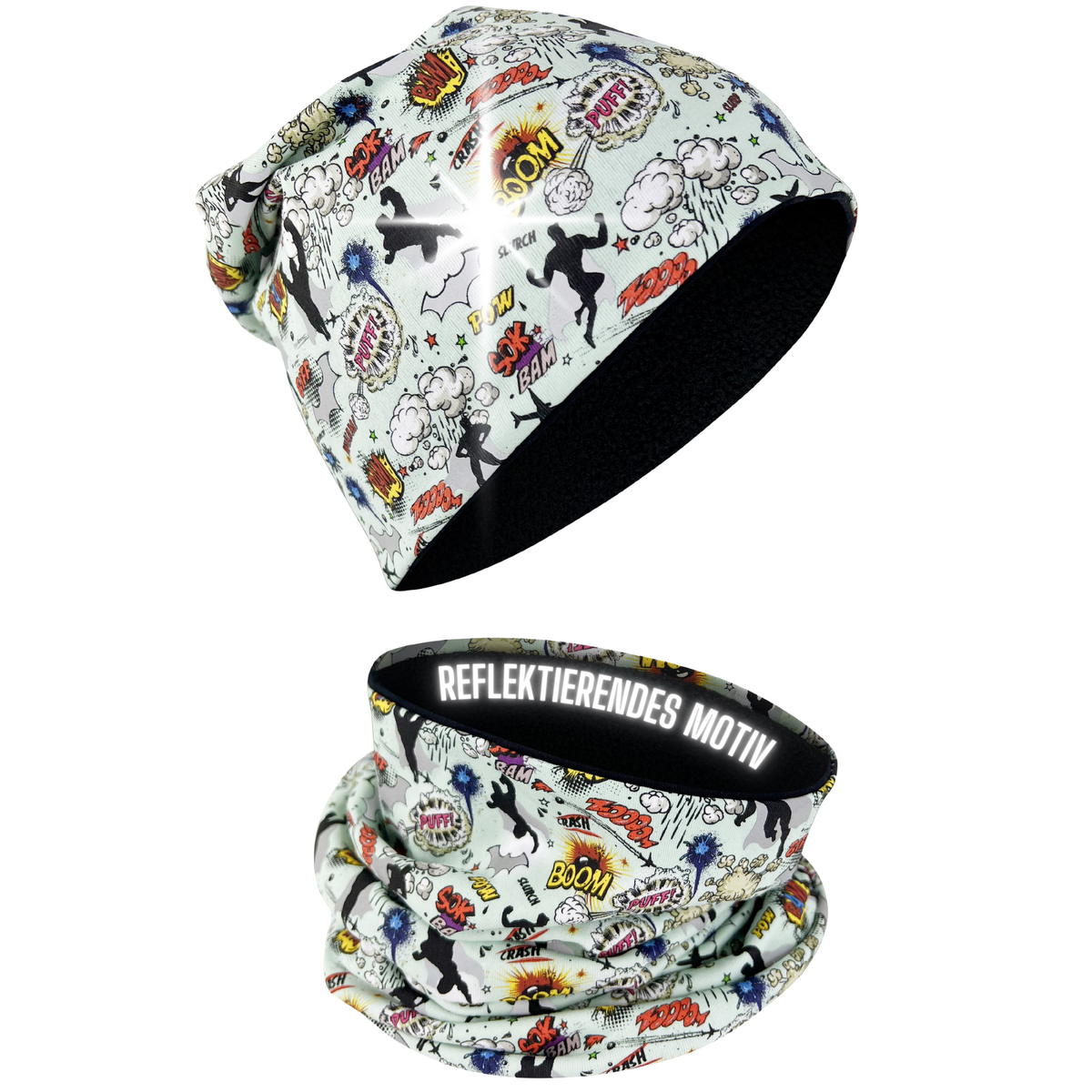 Kinderreflector Mütze en Loop Superheld Zichtbaar Warm