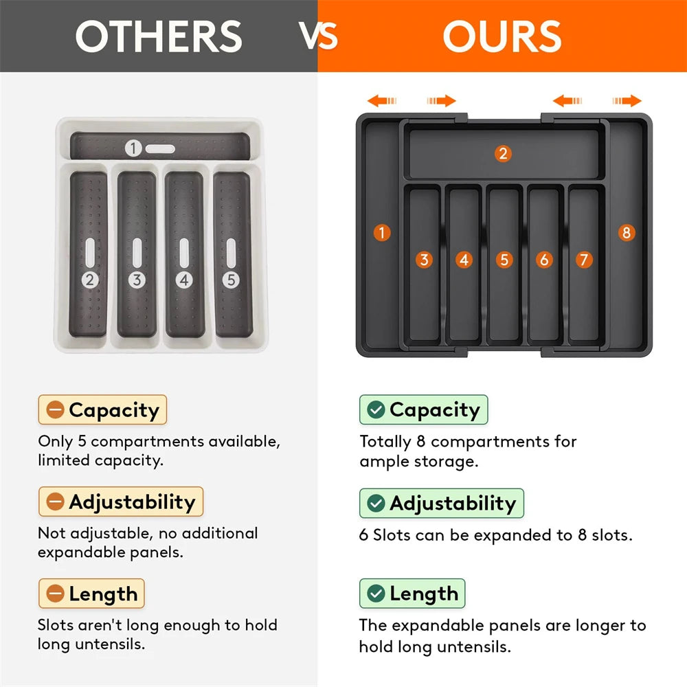 Verstelbare en uitbreidbare bestek lade-organizer