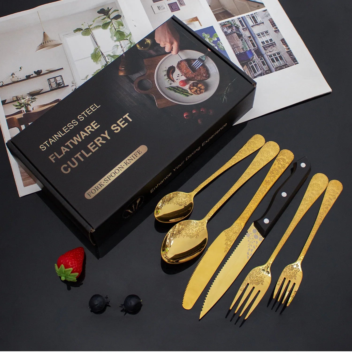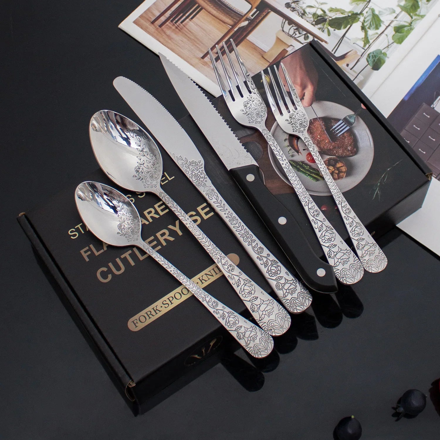 - Inhoud: Steak messen, vorken, lepels