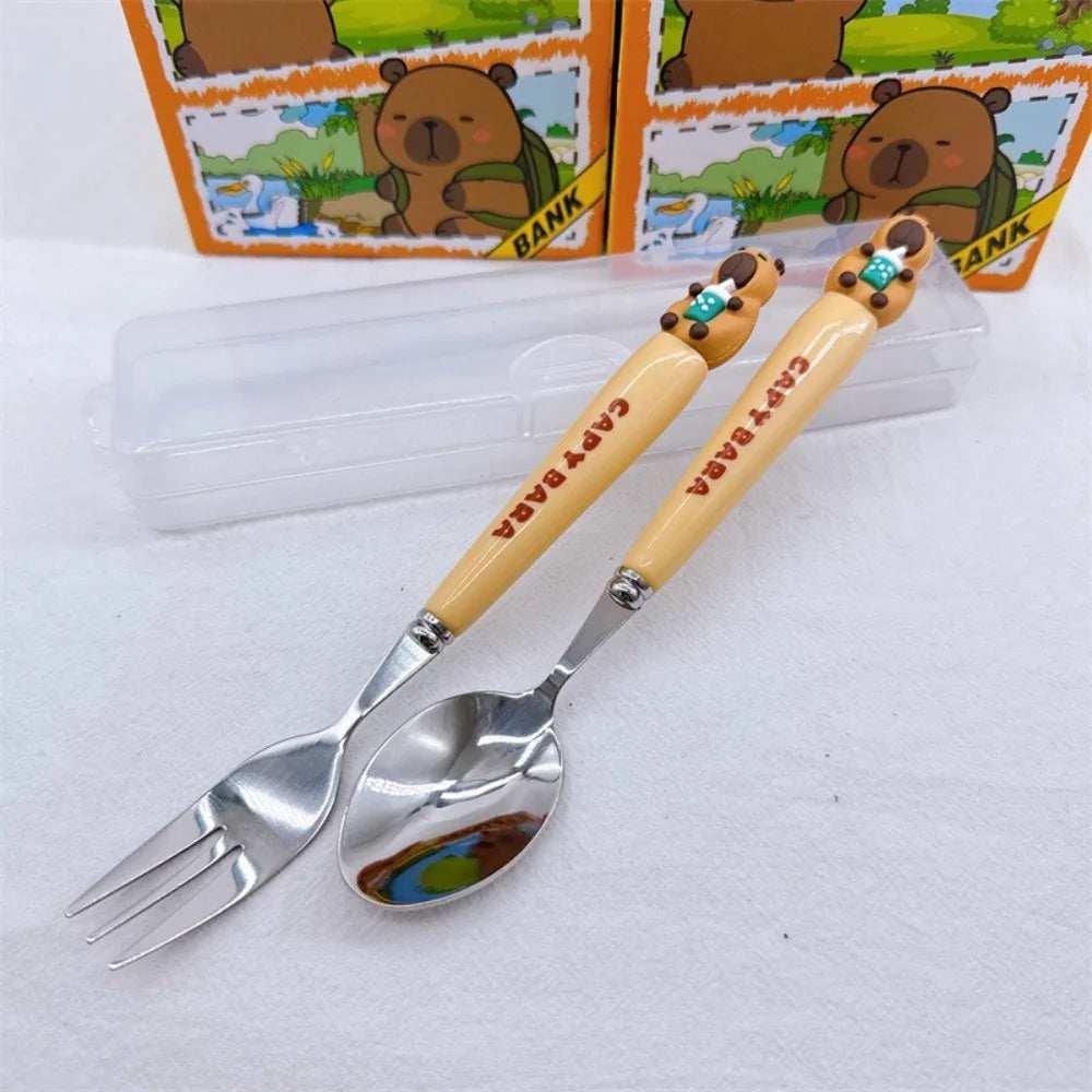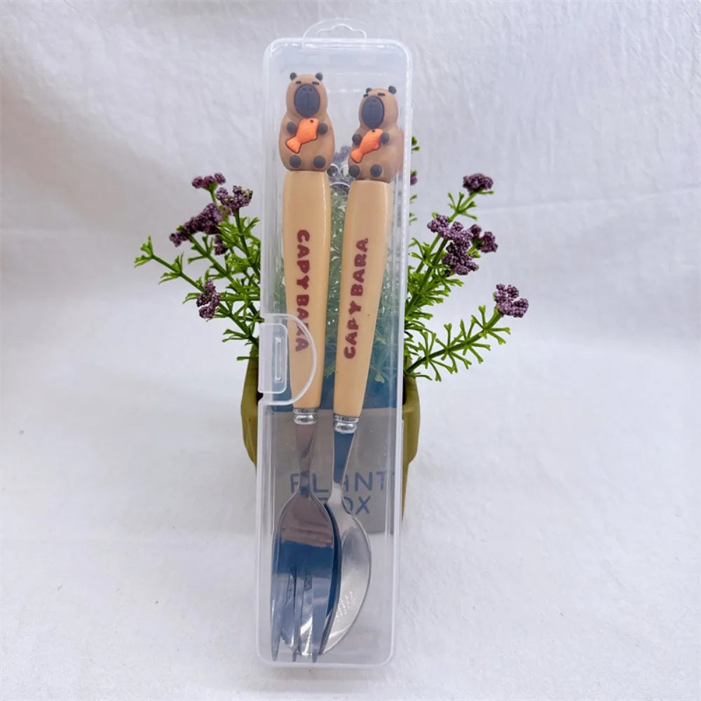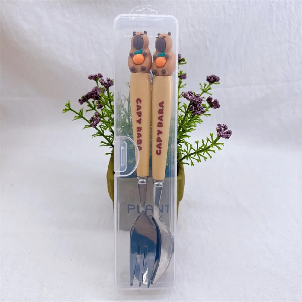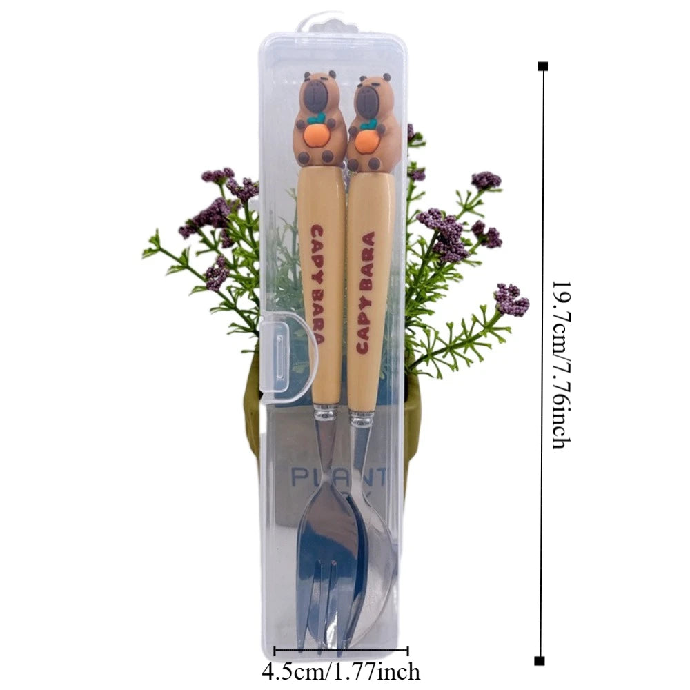 Maak kennis met de speelse Capybara bestekset, ideaal voor al jouw eetmomenten onderweg. Deze handige set bestaat uit een vork en een lepel, vakkundig vervaardigd uit duurzaam 304 roestvrij staal. Voor extra grip en veiligheid is het bestek voorzien van comfortabele siliconen accenten. Het vrolijke cartoon patroon van een capybara voegt een vriendelijk en uniek accent toe aan elke maaltijd, of je nu thuis bent, op kantoor of op reis.