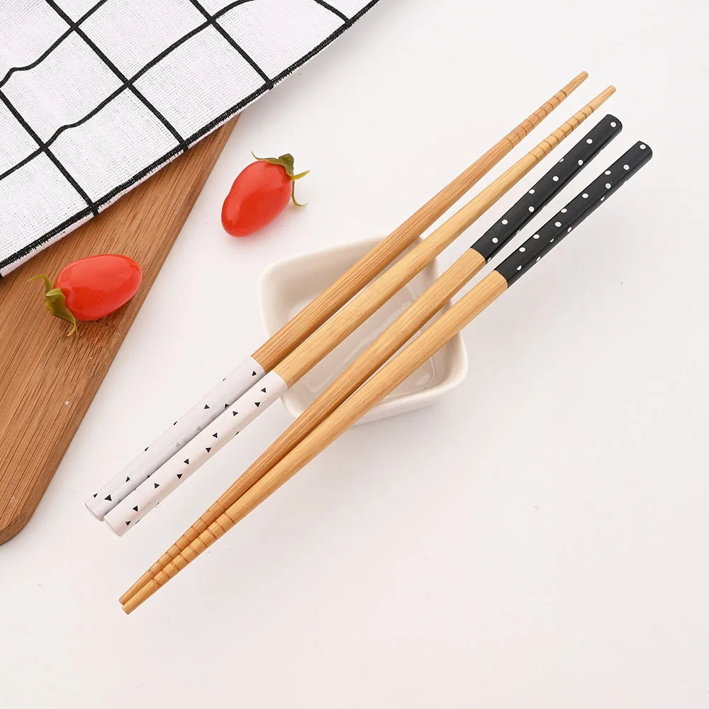 Houd de stokjes schoon en droog na gebruik om de natuurlijke afwerking te behouden. Dankzij het gebruik van bamboo blijven ze duurzaam en resistent tegen dagelijkse slijtage, terwijl de beschadigde of nagelekte patronen op de grip een elegant detail blijven toevoegen aan elk etentje.