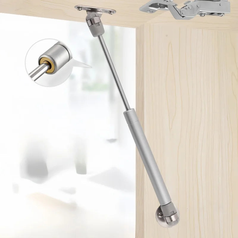 De gasveren zijn gemaakt met een sterke koperkern en een constructie van ABS, ijzer en koper, wat zorgt voor duurzaamheid en een lange levensduur. De zinkplating op het oppervlak geeft niet alleen een nette afwerking, maar beschermt ook tegen roest en verkleuring. De combinatie van stevige materialen en een zacht sluitende piston betekent dat je minder kracht hoeft te zetten om deuren te sluiten en dat deze nooit meer hard dichtklappen. Dit draagt bij aan het behoud van je meubels en verhoogt het gebruiksgemak in huis.
