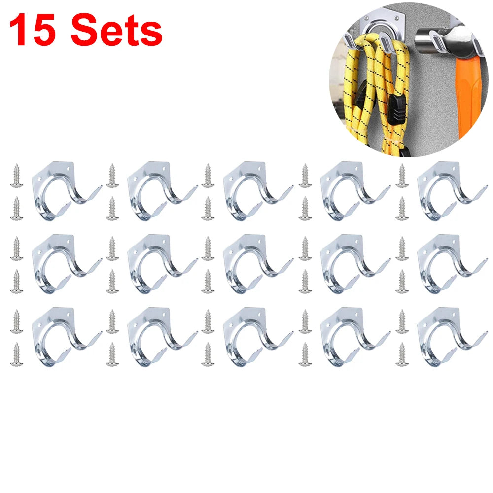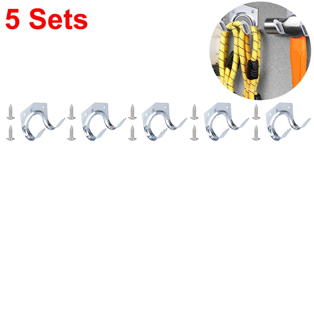 Set van 5 Dubbele Gietijzeren Wandhaken voor Gereedschap
