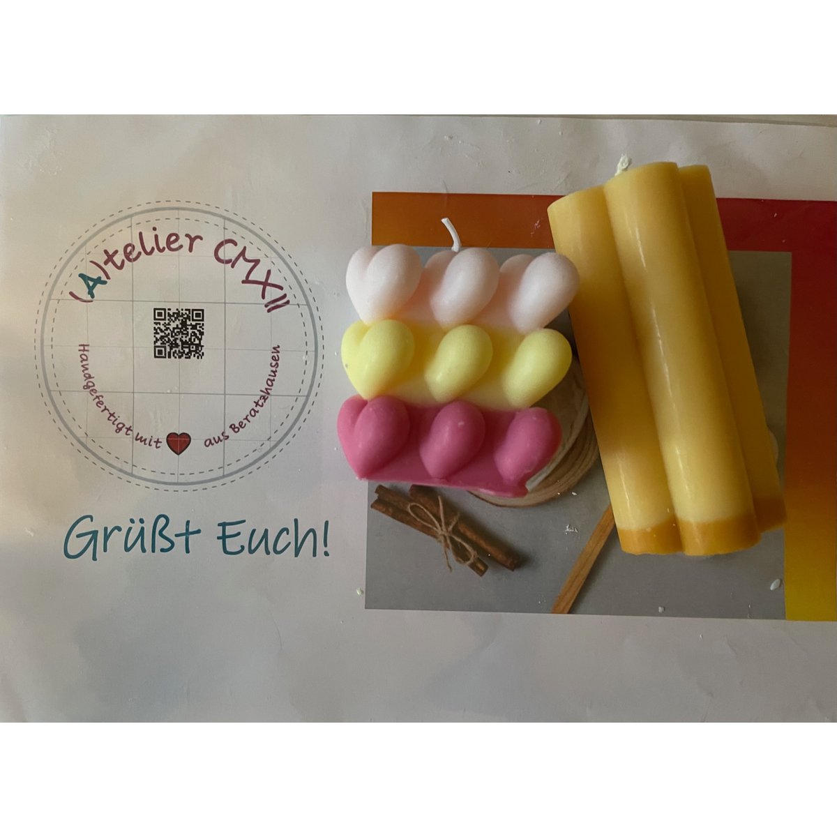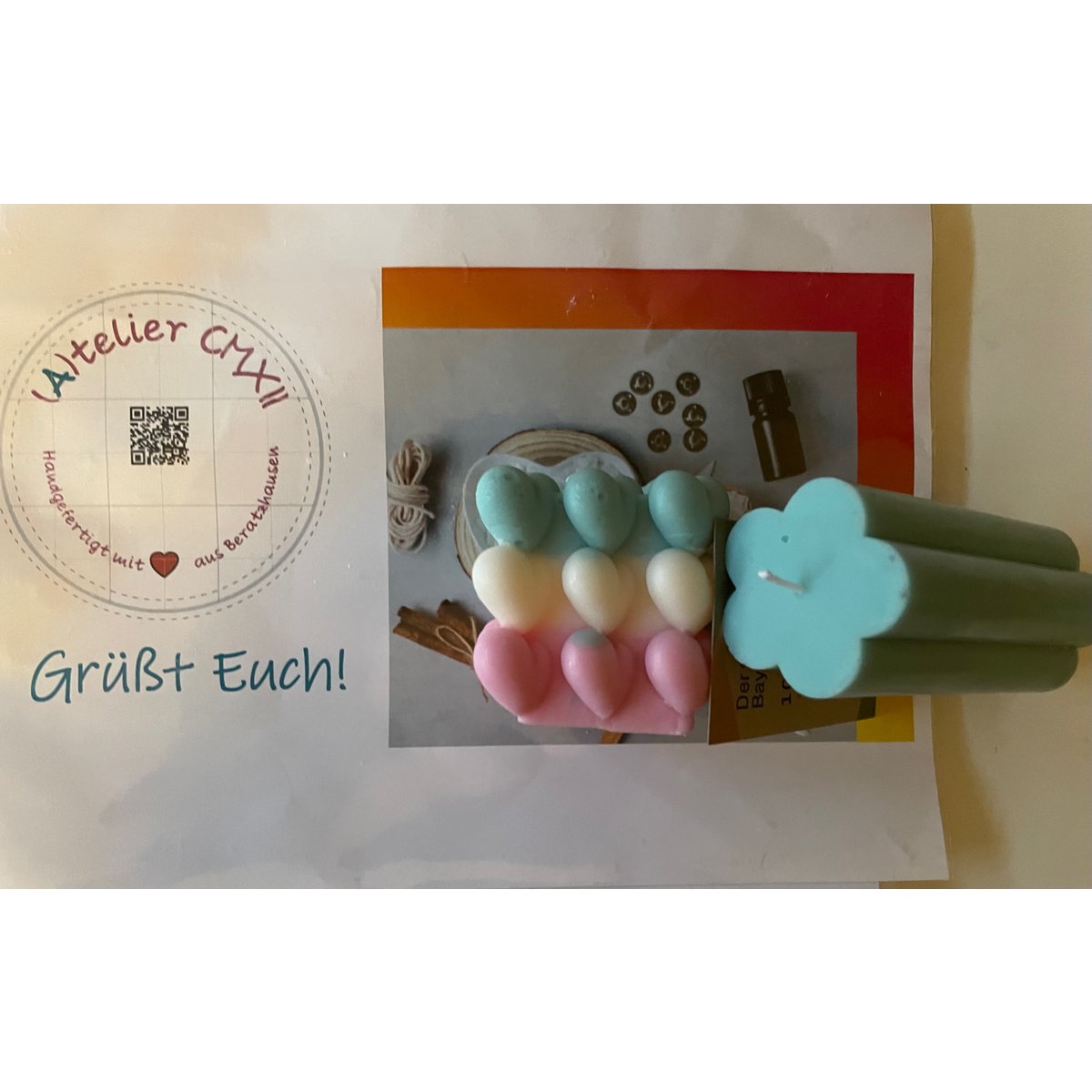 Cadeau-idee - Kaarsenset met hartvormige kubus en rozen in 3D