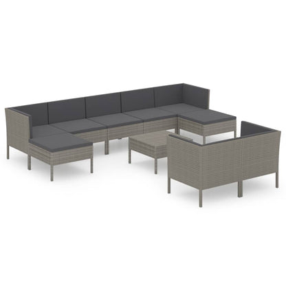 10-Delige Loungeset Met Kussens Poly Rattan Grijs