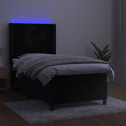 Transformeer je slaapkamer met de boxspring met matras en LED fluweel zwart 90x200 cm. Profiteer van het luxe gevoel en het uitstekende slaapcomfort dat deze boxspring te bieden heeft. Wacht niet langer en bestel vandaag nog!