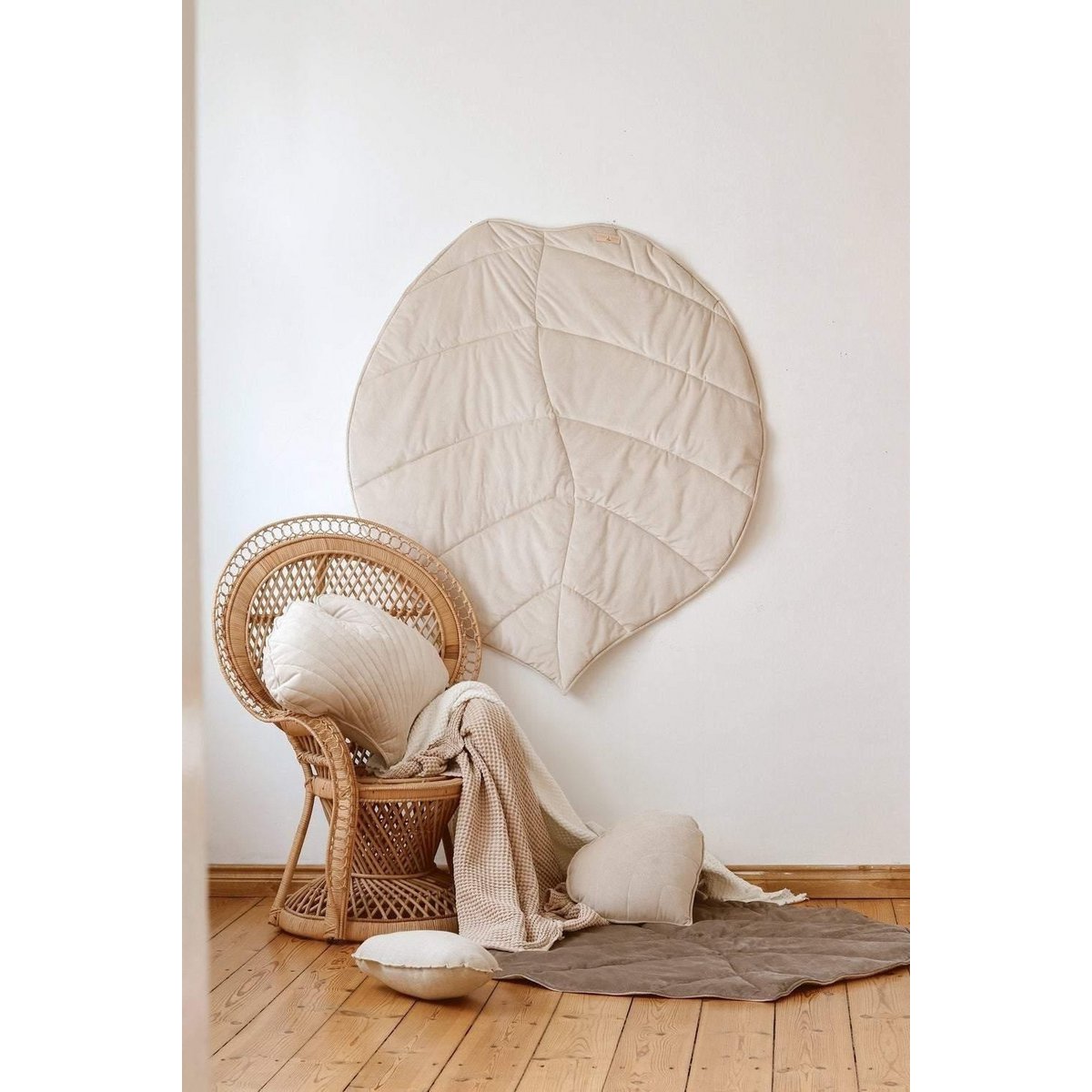 De bladmat is dubbelzijdig en gevuld met een dikke isolatievoering, waardoor hij comfortabel is om op te zitten of liggen. Door het zachte fluweel is hij prettig voor kinderen om op te rollen en met speelgoed te spelen. De crèmekleur past goed bij natuurlijke interieurs, maar contrasteert ook mooi in kleurrijke kinderkamers. Dankzij het lichte gewicht neem je de mat makkelijk mee naar buiten voor een picknick of een dagje naar het park.