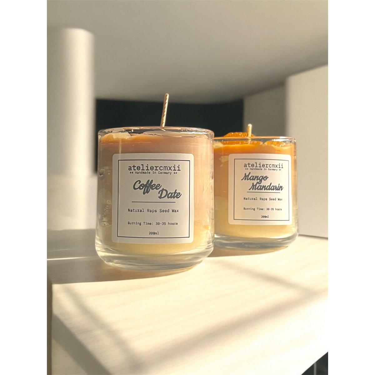 Deze "Drink" geurkaars van AtelierCMXII ruikt zo goed dat het bijna voelt alsof je het drinkt. Verkrijgbaar in vijf herkenbare geuren — vanille, aardbei, komkommer en meloen, koffie, en mango mandarijn — en in de kleurcombinaties wit+roze of wit+bruin. De kaarsen zijn handgemaakt met milieuvriendelijke, veganistische koolzaadwas (raps zaadwas) en bevatten een gelwaslaag op de buitenkant voor een realistische, aantrekkelijke uitstraling.