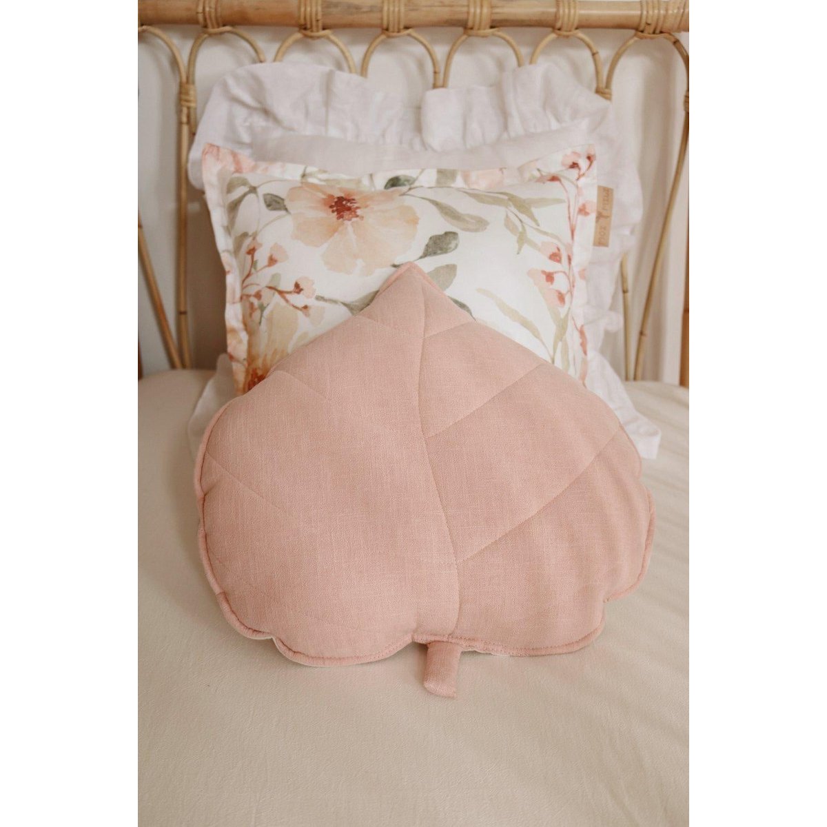 Dit lichtroze linnen bladvormig kussen is een praktisch en stijlvol sierkussen voor de kinderkamer. Het combineert natuurlijke materialen met een onderhoudsvriendelijke, anti-allergische vulling en past uitstekend in een boho of speels interieur. Een slimme keuze als je zoekt naar betaalbaar comfort met een mooie uitstraling.