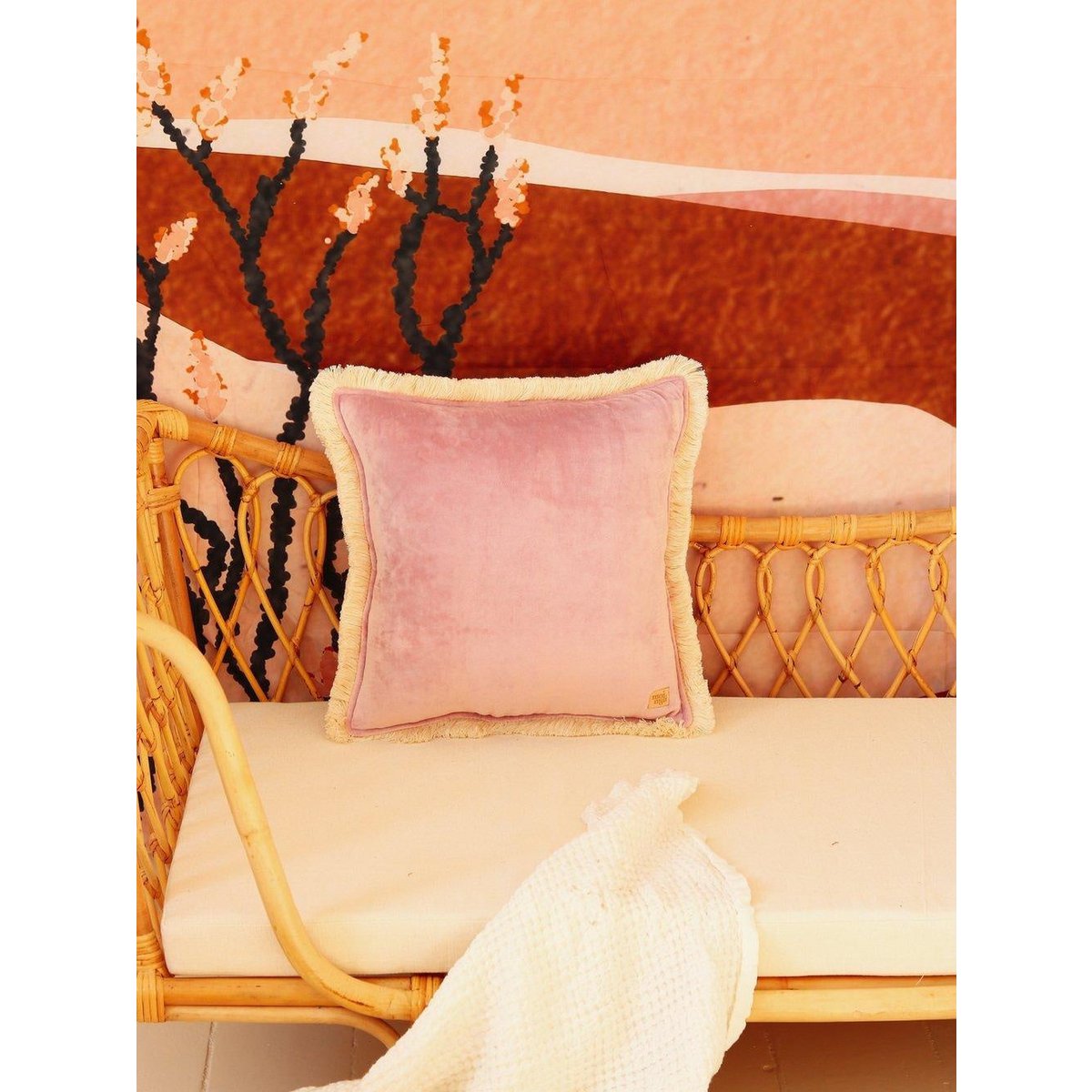 Het lichtroze fluwelen kussen is ideaal als je op zoek bent naar een mooi, comfortabel en praktisch sierkussen met een warme, boho-uitstraling. Het past goed bij andere pastelkleuren en natuurlijke tinten en maakt eenvoudig onderdeel uit van een set met meerdere maten voor een speels effect op bank of bed.