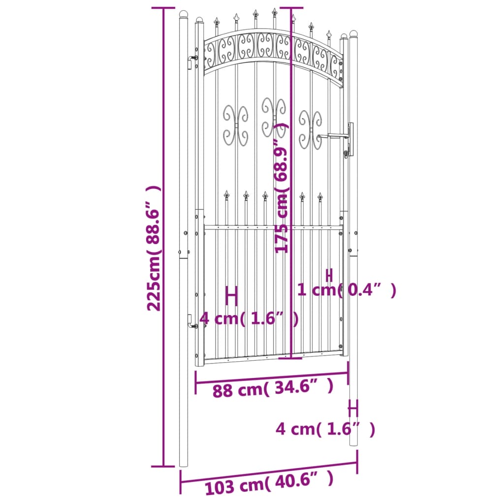 De poort met spijlpunten gepoedercoat staal zwart 406 x 198 cm is de perfecte keuze voor jouw tuin of terras. Deze hoogwaardige poort is niet alleen trendy, maar ook zeer functioneel. Dankzij de duurzame poedercoating is de poort beschermd tegen roest en corrosie, wat de levensduur aanzienlijk verlengt.