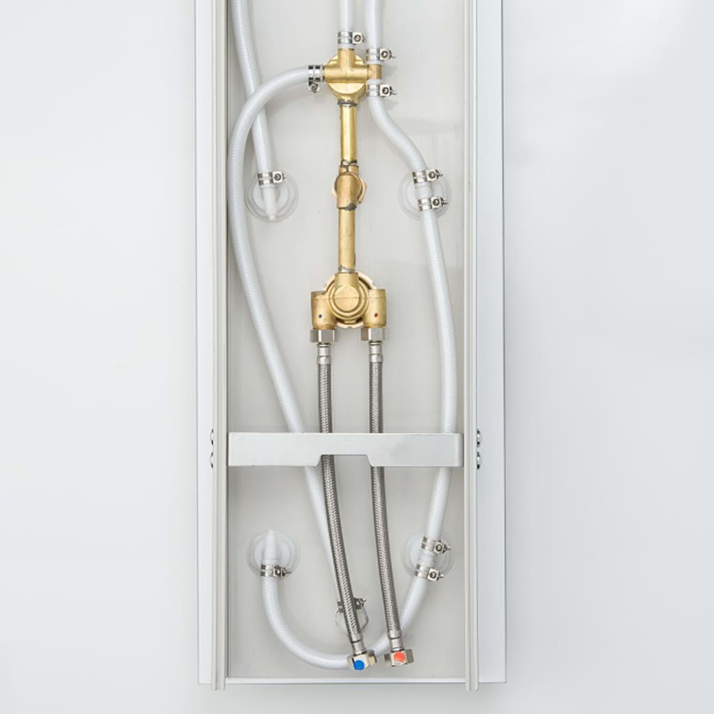De thermostatische mengkraan zorgt ervoor dat je altijd de perfecte watertemperatuur kunt instellen, wat het douchen nog aangenamer maakt. Dit systeem is ook uitgerust met een keramische cartouche van ½" (ø ca. 1,9 cm), die zorgt voor een soepele waterstroom en langdurige betrouwbaarheid.