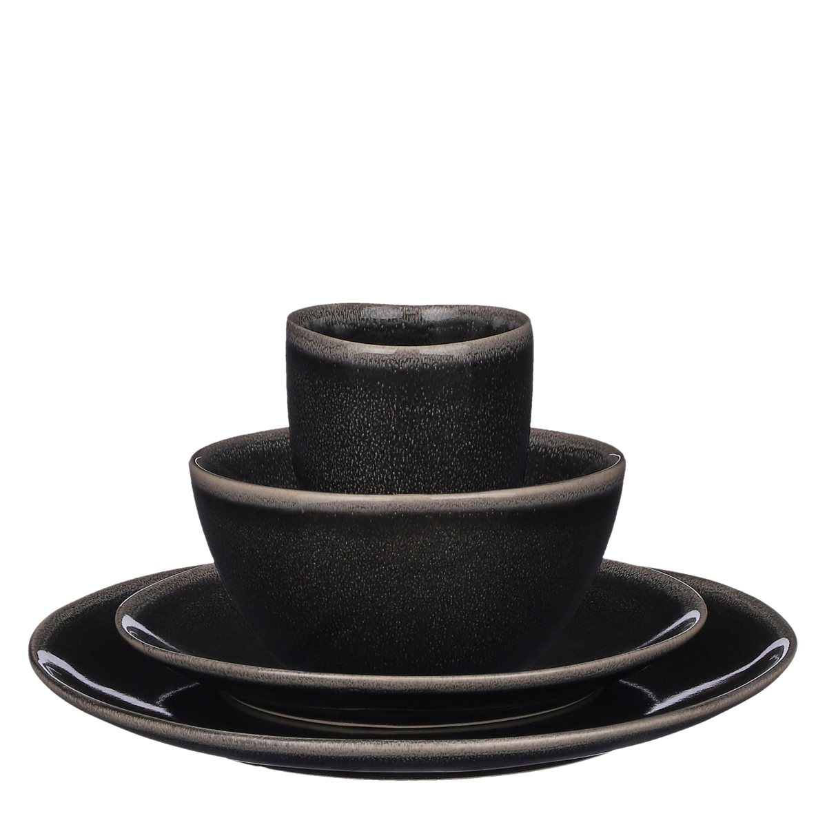 De Tabo set onderscheidt zich door de handgemaakte uitstraling en de zwarte afwerking die direct voor een stoere tafelsetting zorgt. Omdat elk stuk een eigen, authentieke look heeft, werkt de set zowel bij een landelijke als bij een industriële inrichting. Het materiaal is keramiek, solide en geschikt voor dagelijks gebruik.