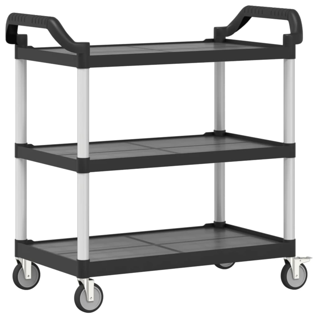 Maak je leven een stukje gemakkelijker met de Trolley 3-laags 99x50x96 cm aluminium zwart. Dit praktische karretje biedt niet alleen extra opbergruimte, maar voegt ook een stijlvol tintje toe aan je interieur. Met drie ruime schappen is er genoeg plek voor snacks, drankjes, vazen of andere decoratieve items. Of je nu een feestje geeft of gewoon je dagelijkse spullen wilt organiseren, deze trolley biedt de oplossing.