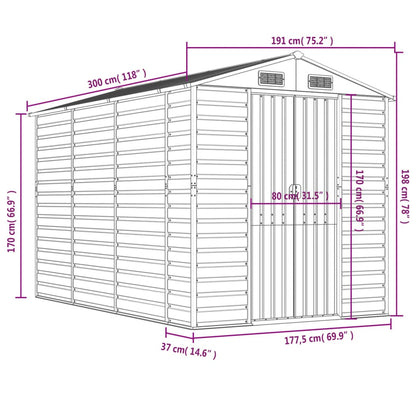 Tuinschuur Gegalvaniseerd Staal 191 x 300 x 198 cm Bruin